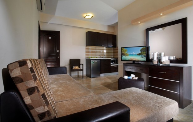 Superior junior suite-24 m2, sa elegantnim dekorom i potpuno opremljenom kuhinjom, ovi junior apartmani imaju bračni ili dva odvojena kreveta i kauč na razvlačenje, sopstveno kupatilo sa tušem i nameštenu terasu, pogodnu za 2-4 osobe.