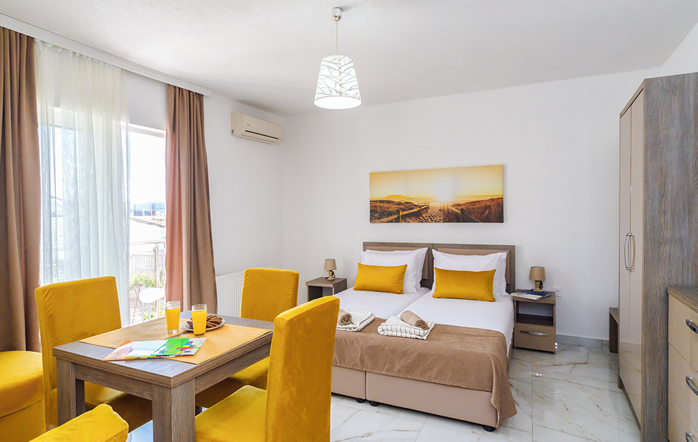 “LARA-S”***kategorizcije sa 3* ima studio ap. strukture 1/2, 1/3, 1/4 ležaja. Svaki poseduje terasu, kupa#lo (fen za