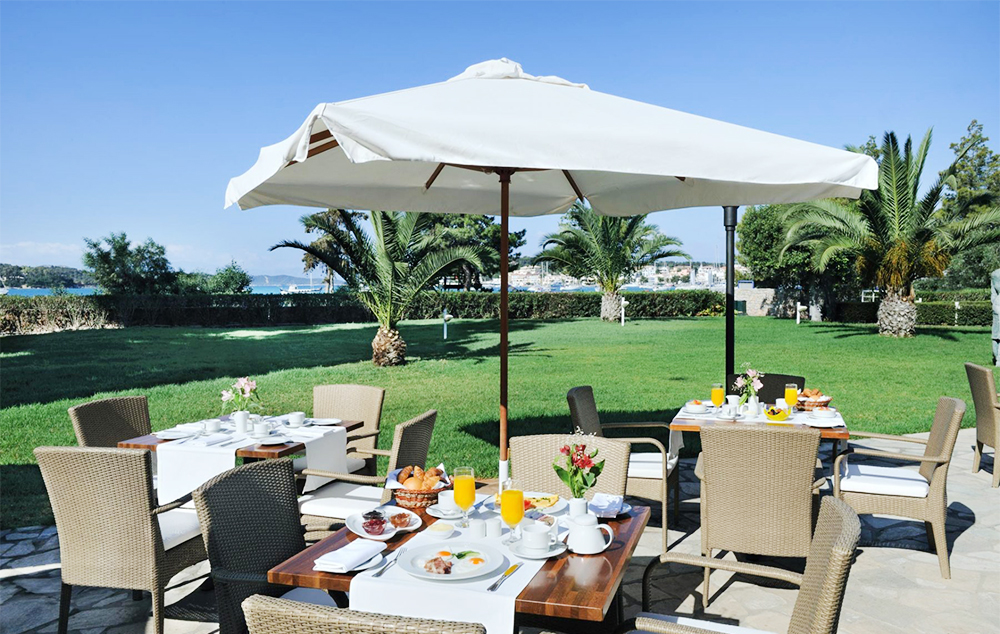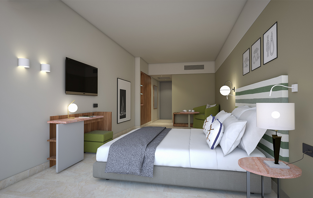 Superior Room Garden View-24 m2, potpuno renoviran, nalazi se u prizemlju ili na 1. spratu, sa pogledom na zelene bašte Porto Helija, ima bračni ili dva odvojena ležaja i pomoćni ležaj za 3. osobu, pogodan za 2-3 osobe.