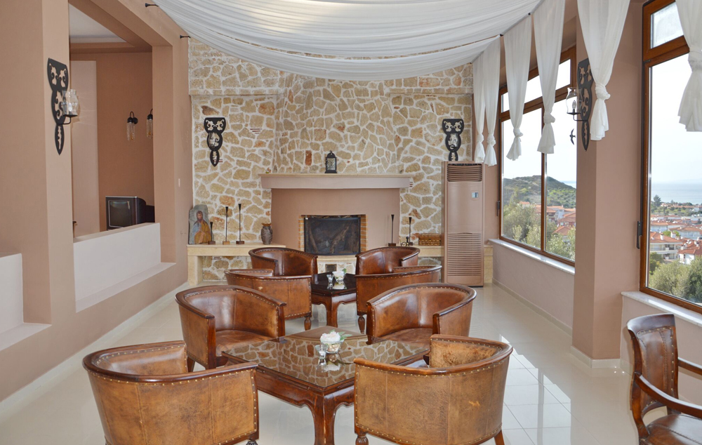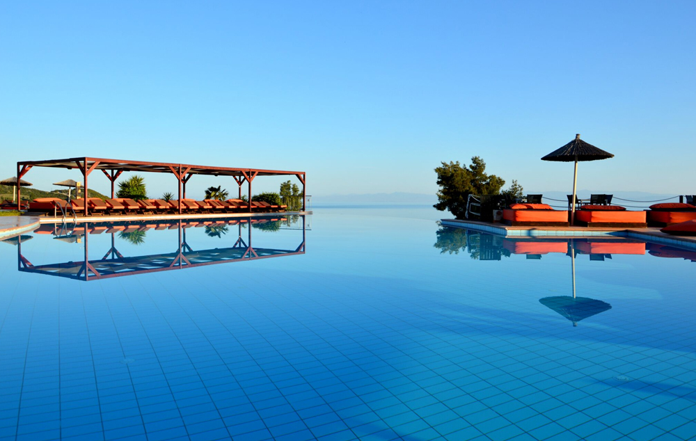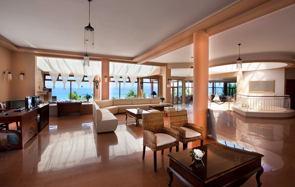 Double Room Sea View – 23 m2, smešten u zgradi najbližoj recepciji, idealne pozicije kako bi pružio najbolji mogući pogled na golf teren Toroneos i selo Pefkohori (namenjen za 2-3 osobe, bračni krevet sa sofom).