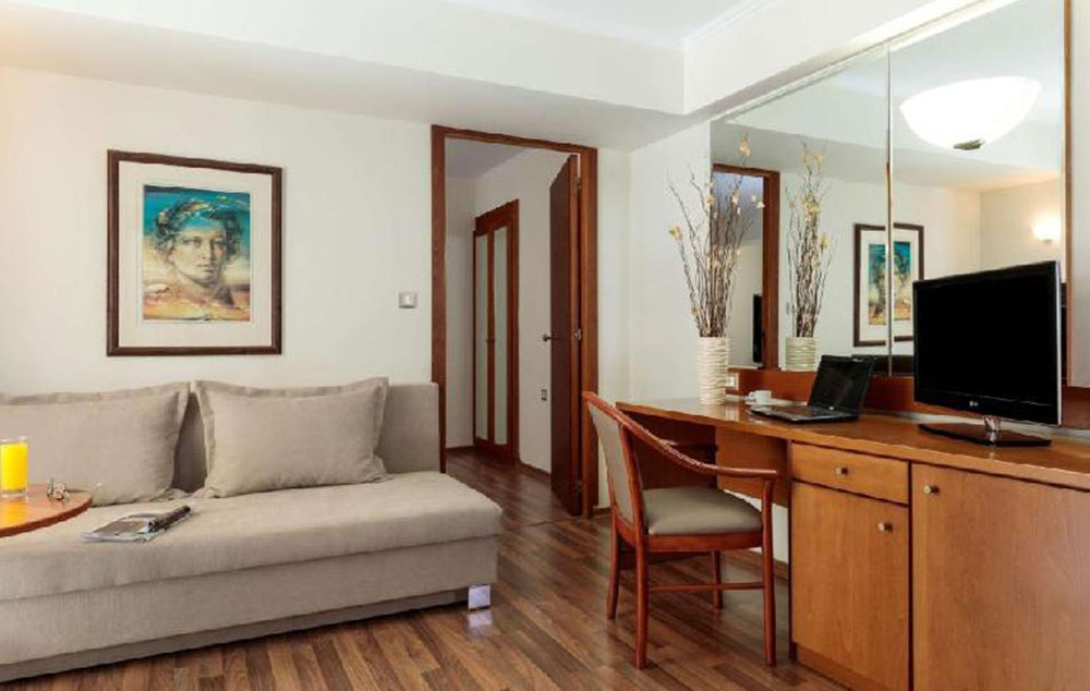 Hotel raspolaže sa 136 soba. U ponudi naše agencije su standardne sobe koje mogu da prime maksimalno tri odrasle osobe ili dve odrasle osobe i dete. Sastoje se od francuskog ili dva odvojena ležaja, dok ležaj za treću osobu može biti pomoćni. Sve imaju kupatilo, fen za kosu, klima uređaj, SAT TV, wi-fi internet (besplatno), sef (besplatno), mini frižider, ketler, telefon, balkon ili terasu.