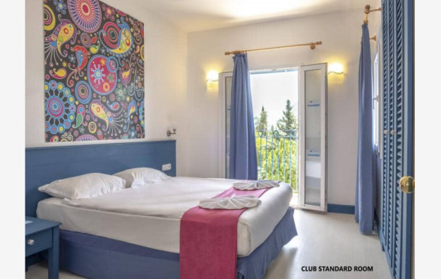 Sobe: standard sobe se nalaze u glavnoj zgradi, imaju 45m² i poseduju kupatilo (WC i fen za sušenje kose), mini-bar (besplatno voda po dolasku i dopunjava se vodom na dnevnom nivou), telefon (uz doplatu), klima, SAT TV, balkon ili terasa, wi fi. Maksimalno borave 3 odrasle osobe. Club standard sobe imaju površinu od 20-24m2 i isto su opremljene kao standard sobe i poseduju francuski balkon. Maksimalno borave 2 odrasle osobe. Family sobe imaju površinu od 47-60m2 i mogu da se nalaze u glavnoj zgradi, anex zgradi ili u club delu (u club delu su sobe manje površine). Family sobe imaju dnevni boravak i odvojenu spavaću sobu. Isto su opremljene kao standard sobe. Maksimalno boravi 6 odraslih osoba.