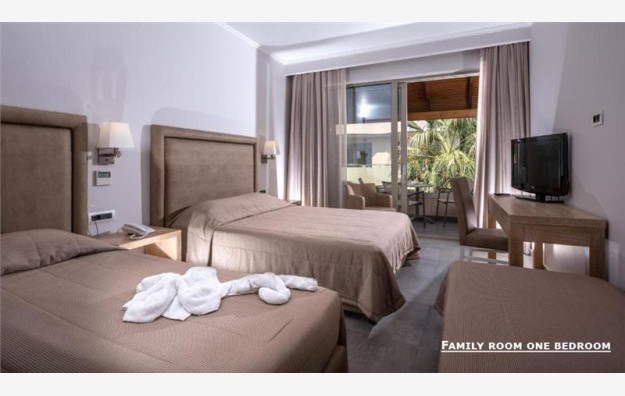 Porodične sobe (sastoje se iz jednog dela) 26m2 mogu primiti dvoje odraslih i dvoje dece ili tri odrasle osobe i jedno dete, a porodične sa dve spavaće sobe 32m2 mogu da prime maksimum dve odrasle osobe i dvoje dece ili tri odrasle i jedno dete kao i 4 odrasle osobe. Sadrže francuski ležaj ili dva standardna ležaja, kao i dodatni ležaj za potrebe treće ili četvrte osobe, a koji može biti pomoćni. U svom sastavu sve sobe sadrže: kupatilo (tuš ili kada), klima uređaj, SatTv, radio, mini frižider, fen za kosu, sef (uz doplatu), telefon, balkon ili terasu. Krevetac za bebe je besplatno, na upit.