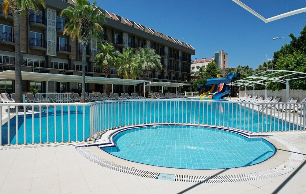Položaj: Hotel je udaljen 120km od Antalijskog aerodroma i 100m od centra Alanje. Poslednji put renoviran 2019. godine. Preko puta hotela se nalazi aqua park Alanja.