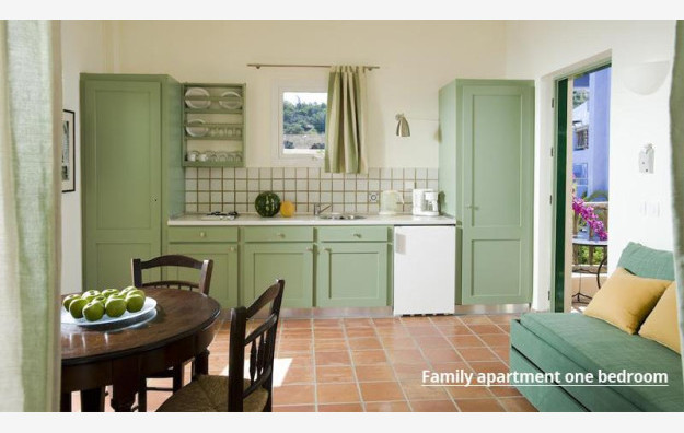 Hotel se sastoji od više manjih zgrada u kojima se nalaze 222 sobe, koje mogu biti udaljene od plaže i do 400 metara, sve sobe su dvokrevetne po svojoj osnovnoj strukturi, dok ostali ležajevi mogu biti pomoćni. "Jednosobni family apartman village view" je kvadrature 40 m2 i sastoji se od spavaće sobe i dnevnog boravka sa trpezarijom i kuhinjom. U kuhinjskom delu se nalaze pomoćni ležajevi predviđeni za spavanje treće ili četvrte osobe, a u spavaćoj sobi dva lezaja koji mogu biti spojeni ili odvojeni. "Jednosobni family apartman with garden" je iste kvadrature kao i jednosobni family apartman village view, sa razlikom što ima izlaz na bašte rizorta. Ljubitelji prirode će obozavati ovaj tip sobe zbog pristupa zelenim povrsinama rizorta. Jednosobni family apartman bočni pogled more je kvadrature 40 m2 i sastoji se od spavaće sobe i dnevnog boravka sa trpezarijom i kuhinjom. U kuhinjskom delu se nalaze pomoćni ležajevi predviđeni za spavanje treće ili četvrte osobe, a u spavaćoj sobi dva lezaja koji mogu biti spojeni ili odvojeni. Jednosobni superior apartman bočni pogled more je kvadrature 60m2 može da primi maksimalno četvoro odraslih i dvoje dece ili troje odraslih i troje dece. Sastoji se od jedne spavaće sobe sa dva odvojena kreveta, dnevnog boravka sa trpezarijskim stolom i četiri kreveta na razvlačenje. Svi tipovi apartmana imaju: klima uređaj, wi-fi internet, direktna telefonska linija, sef, SAT-TV, fen za sušenje kose, kuhinju za pripremanje laganih obroka, frižider, aparat za kafu ili čaj, balkon ili terasu sa garniturom za sedenje.