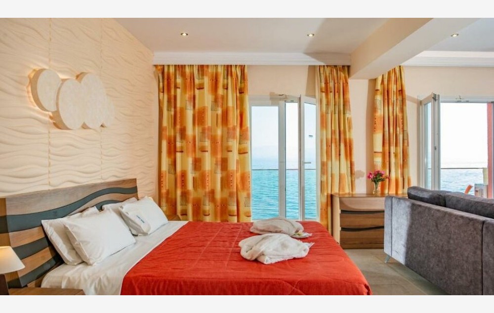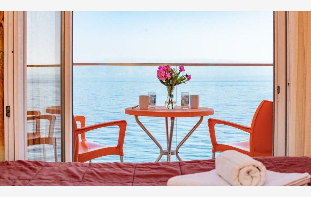 Suite - Apartman otvorenog tipa s balkonom i pogledom na more nudi prostranih 55 m2. Sadrži udoban bračni krevet, pružajući luksuzan i prostran smeštaj.