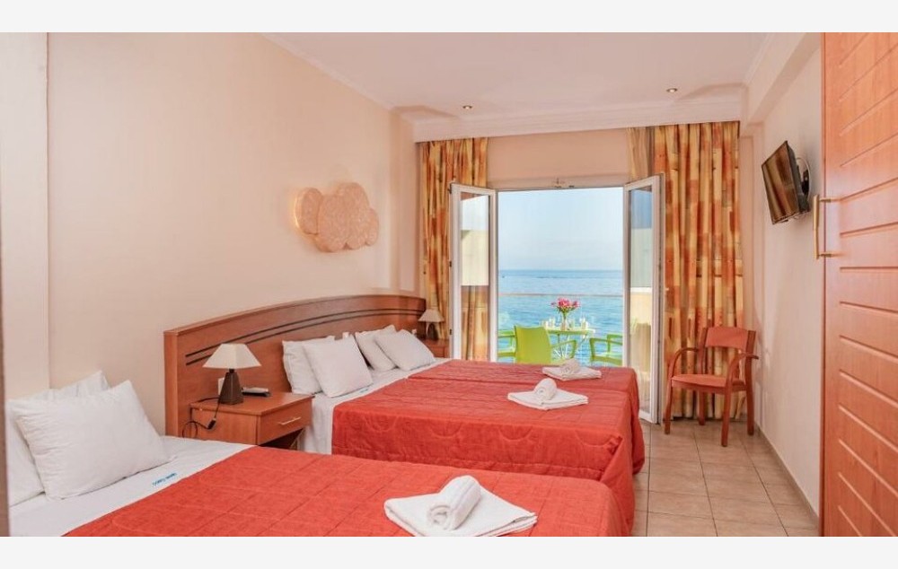 Triple room - Trokrevetna soba, površine 27 m2, nudi prekrasan pogled na more i opremljena je s tri odvojena kreveta za vašu udobnost.