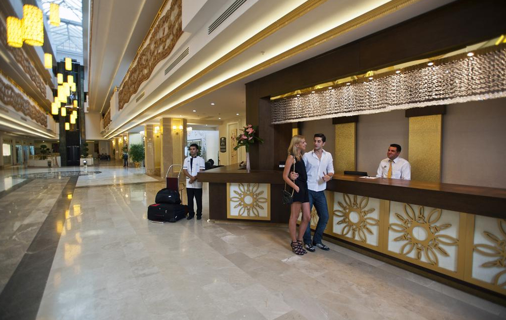Hotelski sadržaj: Recepcija, 2 glavna restorana, 2 a la carte restorana, dijetalni meni, 13 barova, 2 unutrašnja i 5 spoljašnjih bazena, 5 dečijih bazena, 6 đakuzija, akva park sa 19 tobogana (10 dečijih), bioskopska sala, dnevne i večernje animacije, mini klub (za decu od 4-12 godina), teenage klub (za decu od 13-17 godina), mini disko, igraonica, aerobic u vodi, bocanje, pikado, stoni tenis, odbojka na pesku, teniski teren, košarka, tursko veče, hamam, sauna, parna soba, teretana, bilijar (uz doplatu), wi fi (u lobiju).