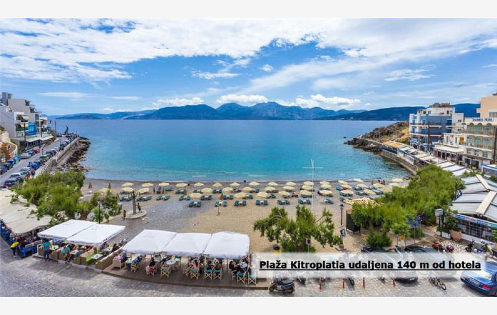 Hotel se nalazi u popularnom gradiću Agios Nikolas, na samo 150 m od prelepe plaže “Kitroplatija”, dok su centar grada i luka udaljeni 350 metara. Hotel je udaljen 61 km od aerodroma i luke Heraklion.