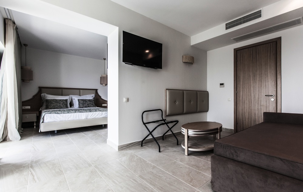 Superior Room Sea View- 24-27 m2, Udobna dvokrevetna soba sa balkonom i pogledom na Egejsko more ima bračni ili dva odvojena kreveta i sofu-transformer, pogodnu za 2-4 osobe.