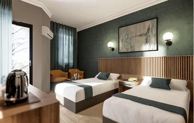 Superior sobe sa pogledom na ulicu ili bazen (20-40m²). Sadrže jedan bračni krevet, jedan singl ležaj i sofu na razvlačenje. Maksimalno mogu da borave tri odrasle osobe i jedno dete do 6 godina.