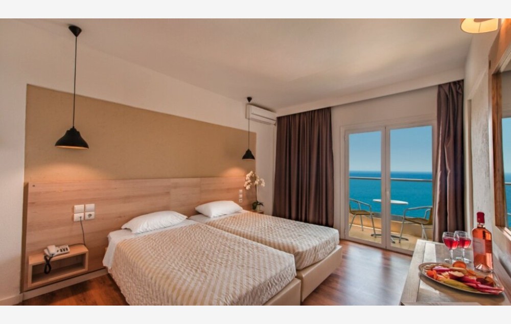 Superior Room Sea View- Soba otvorenog tipa od 20 m² s bračnim ili dva odvojena kreveta i dodatnim krevetom, sopstvenim kupatilom i nameštenim balkonom s pogledom na more.