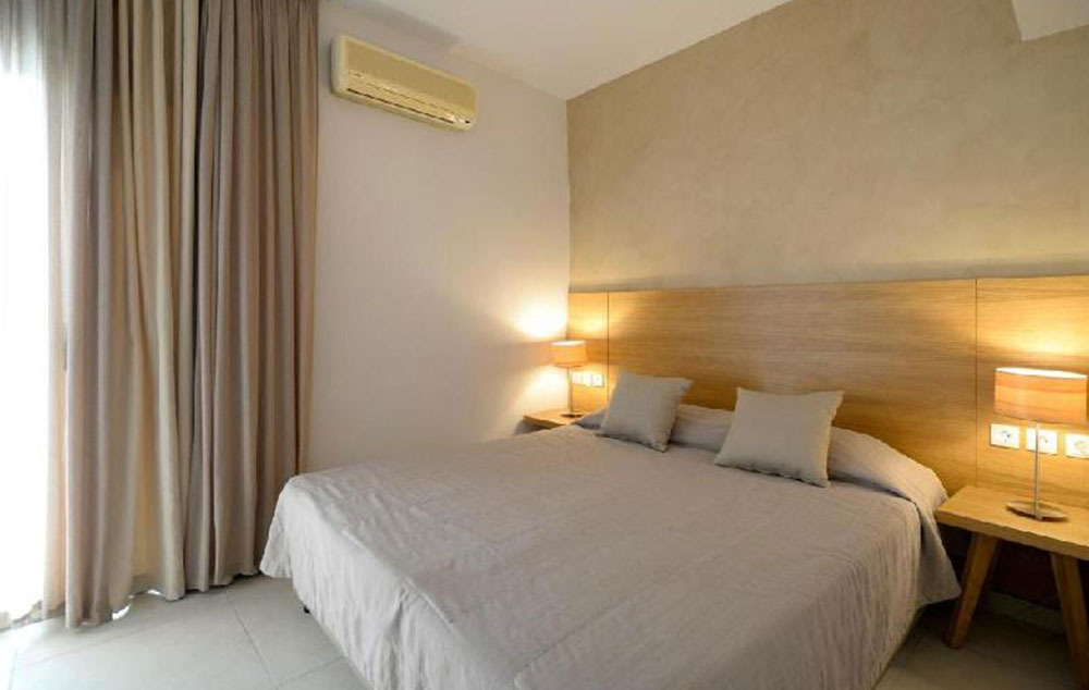 Ukupno 162 sobe koje mogu biti standardne pogled kopno, standardne delimični pogled na more ili pogled more, sve su kvadrature oko 18m2. Sve sobe su po svojoj osnovnoj strukturi dvokrevetne, sastoje se od francuskog ili dva sing ležaja, dok ostali ležajevi mogu biti pomoćni. Standardne sobe pogled more i bočni pogled more su kapaciteta maksimum dve osobe, dok se u sobe "land view" mogu smestiti maksimum tri odrasle ili dve odrasle osobe i jedno dete (za potrebe treće osobe ubacuje se pomoćni ležaj). Sobe u svom sastavu imaju klimu, Sat Tv, telefon, frižider, sef (uz doplatu), fen za kosu, wi-fi, balkon ili terasu. Bebi krevetac je gostima na raspolaganju besplatno (obavezna najava prilikom rezervacije).