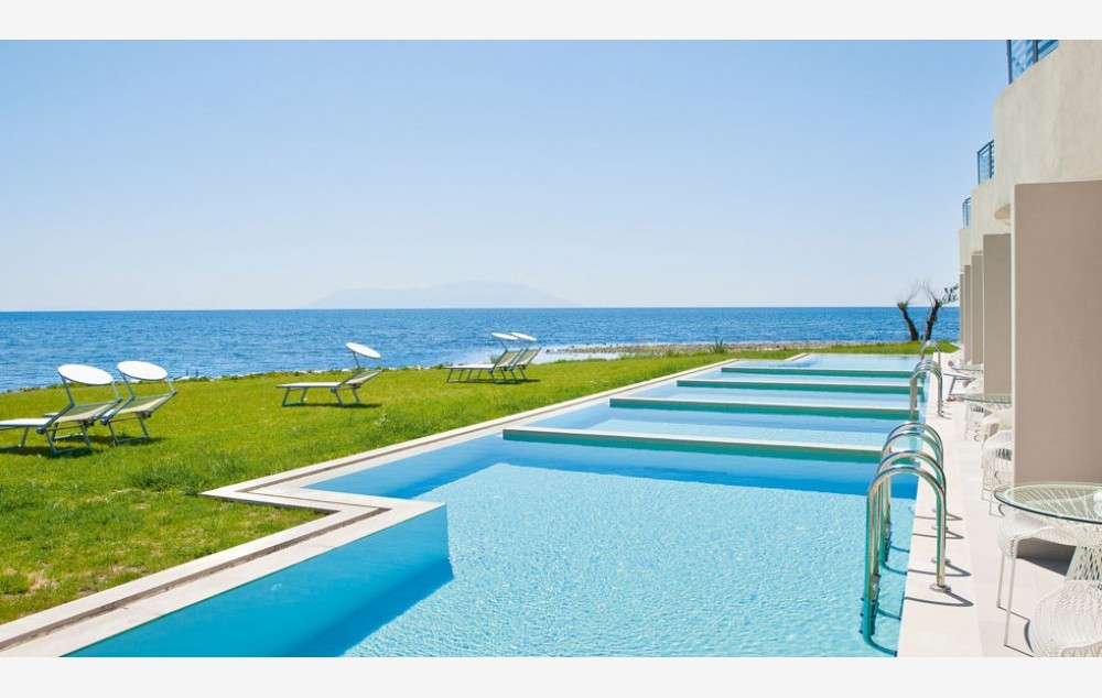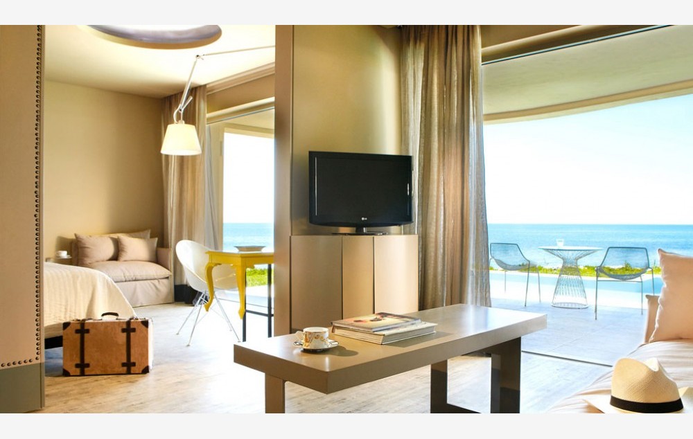 Panoramic Suite Seafront- Apartman otvorenog tipa od 54 m2 s bračnim ili dva odvojena kreveta i dnevnim boravkom s ugaonom sofom pogodnom za 3. i 4. osobu.