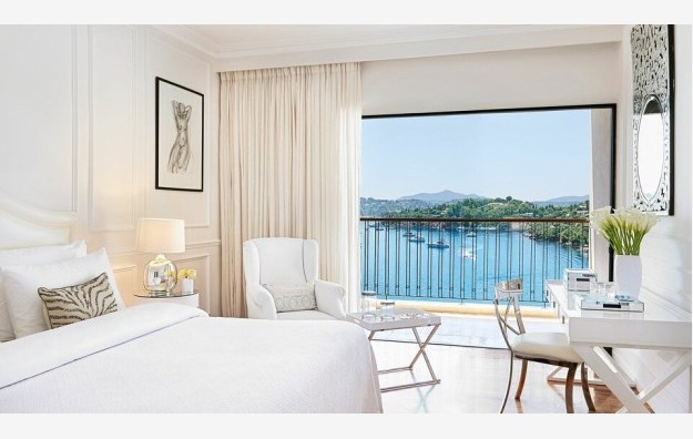 Panoramic Guestroom Sea View-32 m2, idealno raspoređene na višim spratovima glavne zgrade, ove elegantne, preuređene sobe za goste, kombinuju klasičnu veličinu sa pametnim modernim detaljima, sa bračnim krevetom.