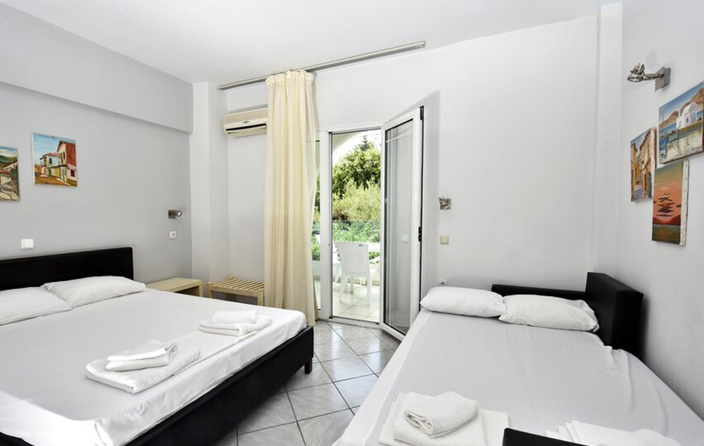 Ground Floor Room-23 m2, smeštene na donjem nivou, ove sobe imaju dva odvojena kreveta i dva kauča na razvlačenje i verandu sa izlazom na baštu.