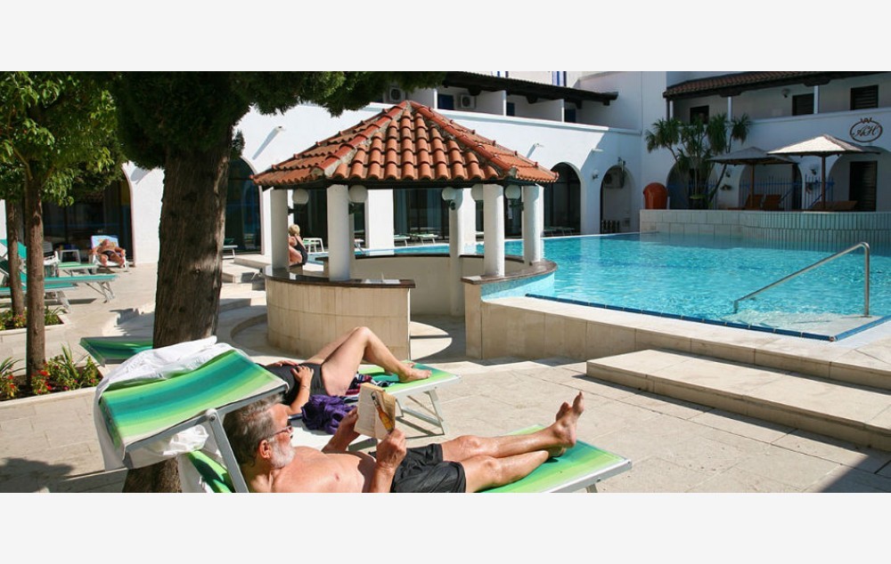 Sadržaj: Hotel poseduje recepciju, restoran, aperitiv bar, snack bar, poslastičarnicu, bazen, mini wellness i spa, sportske sadržaje, wireless internet gratis na javnim mestima (recepcija, loby, bazen, igraonica) i parking koji se plaća.