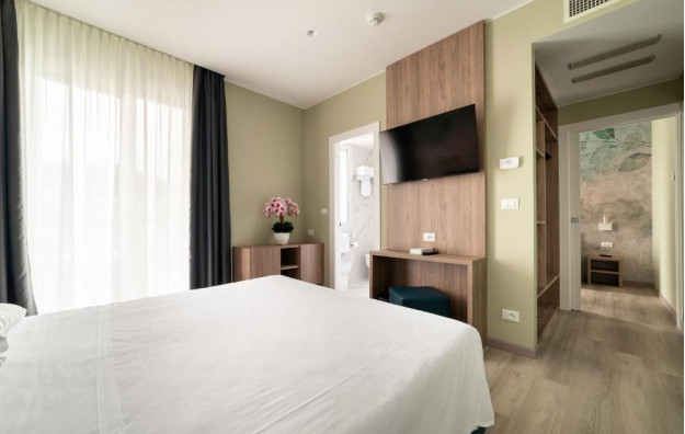 Deluxe 3 -za tri osobe, 14 m2 -renovirana u potpuniosti sa balkonom i klima uređajem,WI Fi,sef, frižider,Tv,kupatilo sa tuš kabinom i fenom, mini -bar . Sadržaj:francuski ležaj i singl sofa-bed ili dva singl ležaja i singl sofa-bed