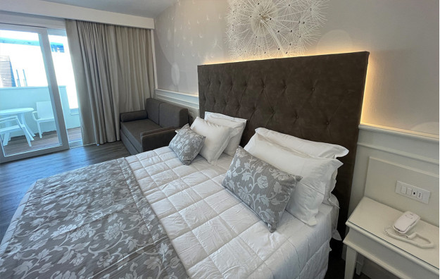 Deluxe 2/3 + krevetac-veličine 18 m2 - renovirana soba sa balkonom i delimičnim pogledom na more.