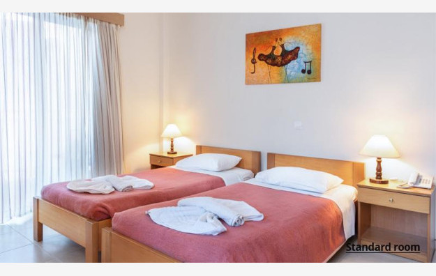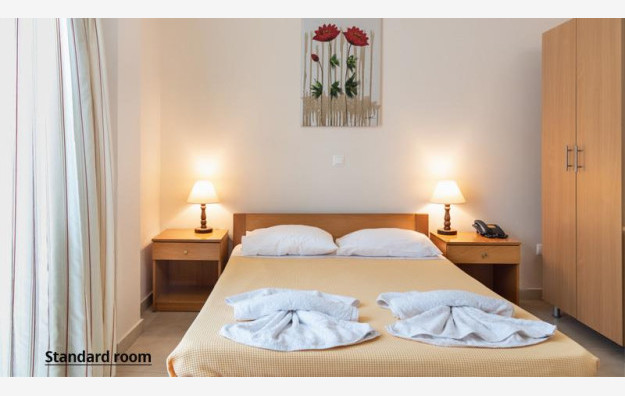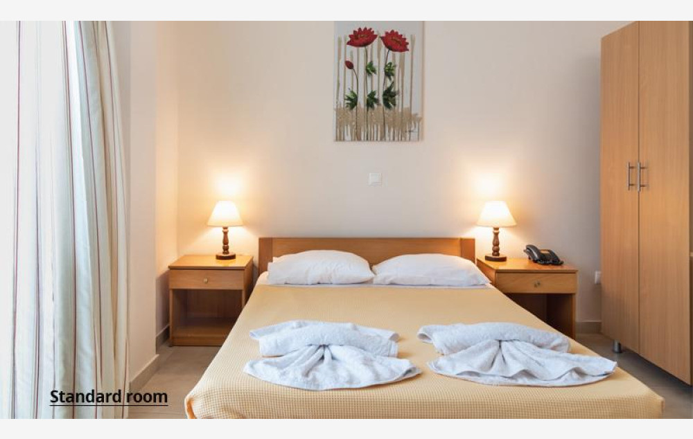 Hotel raspolaže sa 42 smeštajne jedinice. Sve sobe sadrže klima uređaj (uz doplatu 5 evra dnevno), SatTV, telefon, Wi-fi internet besplatno, mini frižider, sef (besplatno), kupatilo, balkon ili terasu. U ponudi su standardne sobe koje sadrže francuski ili dva odvojena ležaja i primaju maksimalno dve osobe.