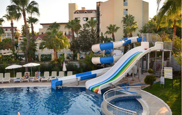 Hotelski sadržaj: Recepcija, glavni restoran, a la carte restoran, bar pored bazena, bar na plaži, bazen za odrasle, dečiji bazen, dva tobogana, dečije igralište, dnevnu animaciju, večernji mini disko, fitness, tursko kupatilo, saunu, stoni tenis, bilijar, wi fi se doplaćuje.