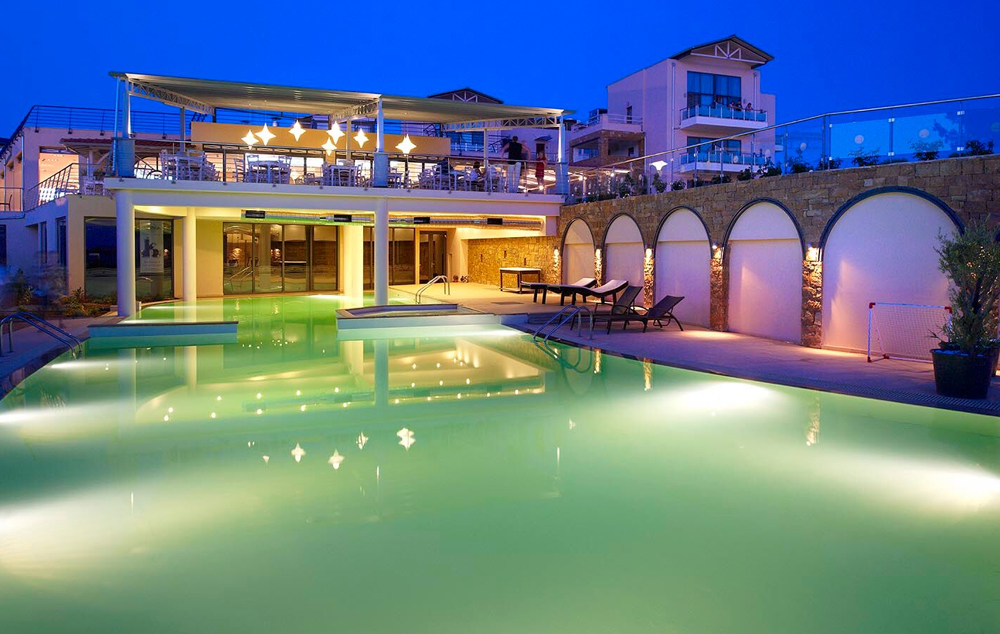 SADRZAJ: glavni restoran, grčka taverna, italijanski restoran, bar kraj bazena, spa centar, sportovi na vodi, ronjenje i surfovanje, teniske terene, odbojka na plaži, stoni tenis, boćanje, aerobik, teretana, djakuzi, sauna, masaža u okviru spa centra, šoping deo, otvoreni i zatvoreni bazen, internet ugao, wireless internet u opštim delovima hotela, servis za pranje veša, rent-a-car, parking, bazen za decu, dečije igralište, mini klub za decu od 4-12 godina...