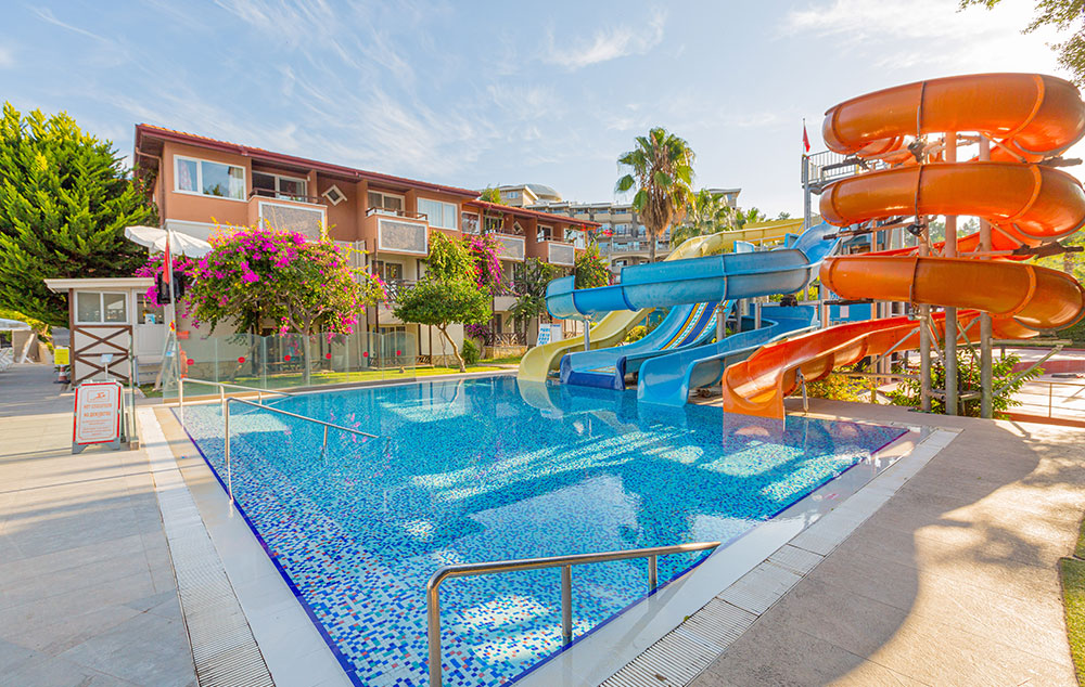 Položaj: Rezort se nalazi u regiji Okurdžalar, od čijeg centra je udaljen 1km. Od centra Alanje je udaljen 35km od centra Alanje, od aerodrom u Antaliji 90km. Kompletno je renoviran 2019-e godine.