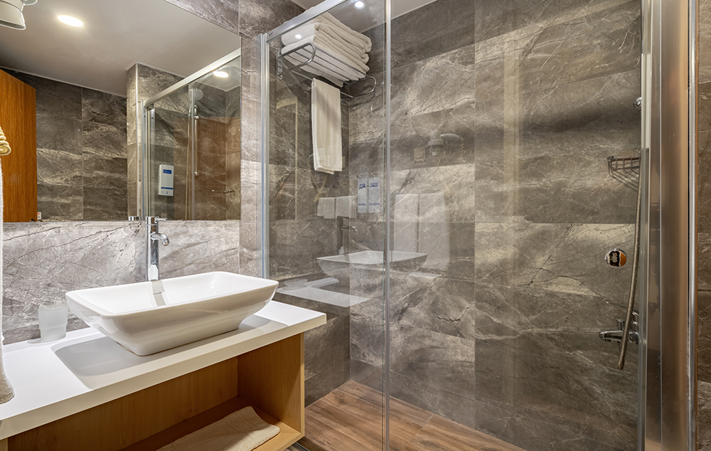 Sve sobe imaju: Kupatilo sa tušem/wc, klimu, fen, SAT/TV, telefon, mini bar (voda I sokovi se dopunjuju jednom nedeljno), sef (uz doplatu), wi fi (uz doplatu). Neke sobe nemaju balkon.