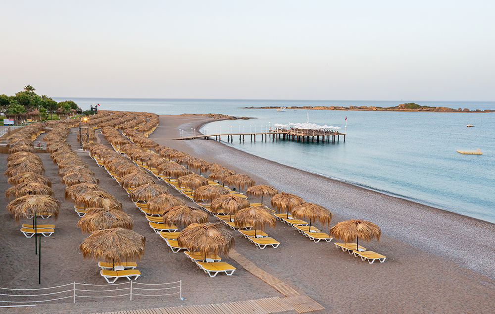 Plaža: Hotelska plaža (deo na Kleopatrinoj plaži )je udaljena 500m od hotela. Gostima je na raspolaganju shuttle bus koji vozi do plaže. Ležaljke i suncobrani koriste bez doplate. Peškiri za plažu su besplatni, svaka zamena se dodatno plaća. Bar na plaži se dodatno plaća.