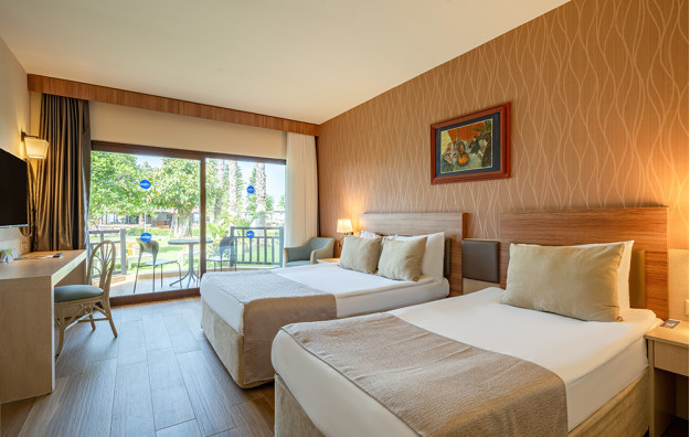 Hotelski sadržaj: Recepcija, glavni restoran, i 3 a’la carte restorana (turski, italijanski i riblji-plaćaju se), 4 bara, unutrašnji bazen, 2 otvorena bazena, 2 vodena tobogana, dečiji bazen, dečiji klub (od 4-12 god.), dnevna i večernja animacija, sportski tereni za tenis, fudbal i odbojku na plaži, stoni tenis, pikado, tursko kupatilo, sauna, fitnes centar.