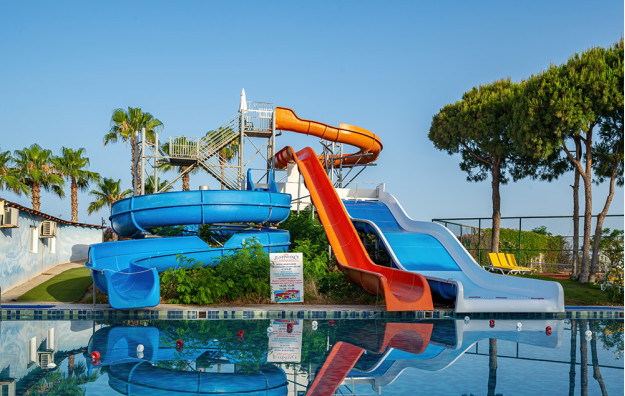 Hotelski sadržaj: Recepcija, glavni restoran, a la carte restoran, bar pored bazena, bar na plaži, bazen za odrasle, dečiji bazen, dva tobogana, dečije igralište, dnevnu animaciju, večernji mini disko, fitness, tursko kupatilo, saunu, stoni tenis, bilijar, wi fi se doplaćuje.