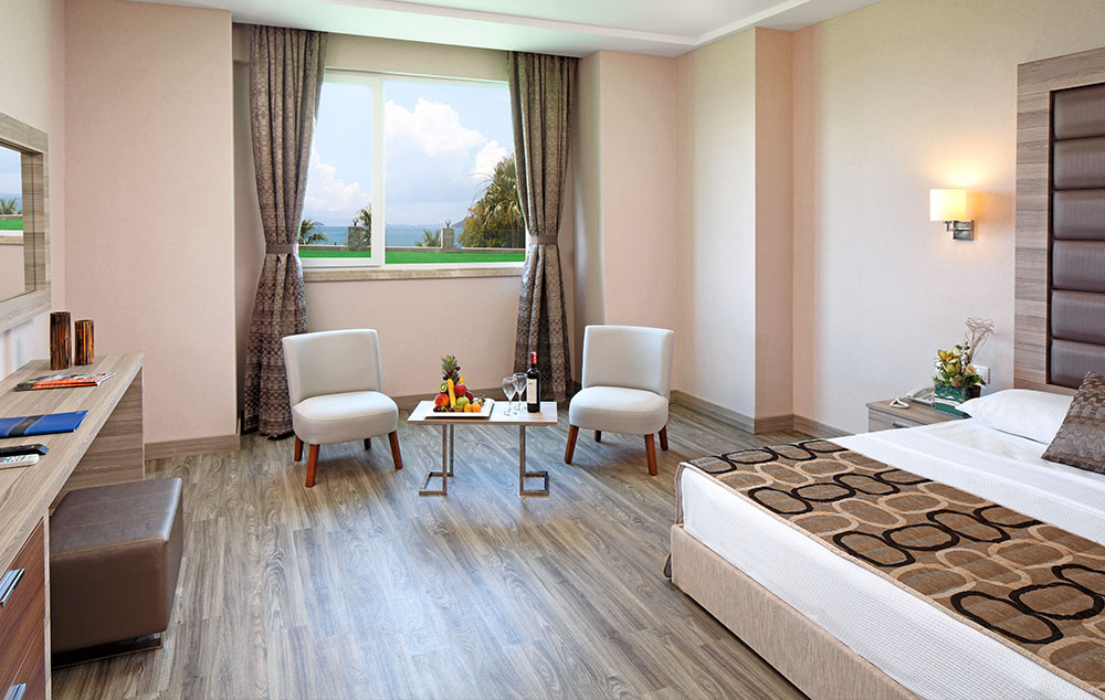 Sobe:238standard soba sapogledom na baštu ili more, veličine izmedju 20-25m², poseduju kupatilo (WC i fen za sušenje kose), mini-bar (dnevno se dopunjava vodom, ostalo uz doplatu), klima, TV, sef (uz doplatu) balkon ili terasa. Maksimalno borave 2 odrasle osobe i 2 dece do 13 godina.