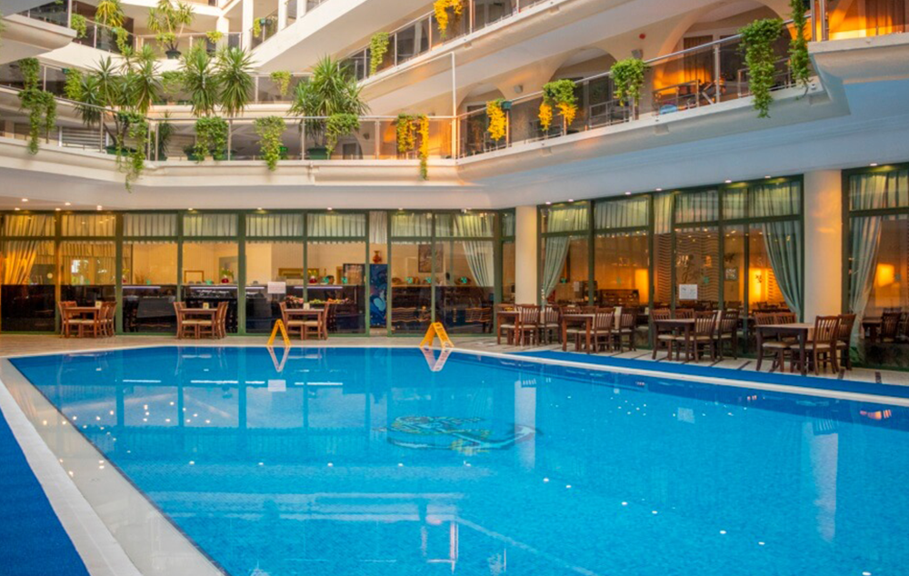 Hotelski sadržaj: Hotel poseduje glavni restoran, 2 a la carte restorana (turski i riblji-korišćenje jednog besplatno u toku boravka uz obaveznu rezervaciju), 2 bara, spoljašnji i unutrašnji bazen za odrasle i decu, večernju animaciju, dečiji klub 8za decu od 4-12 godina), dečija igraonica, mini disko, tursko kupatilo, sauna, masaže, fitness, aerobic, stoni tenis, bilijar, boćanje, pikado, wi fi.