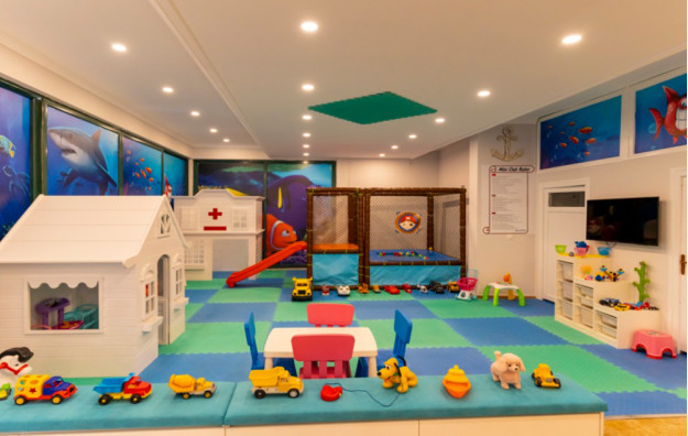 Hotelski sadržaj: Recepcija, 2 glavna restorana, 2 a la carte restorana, dijetalni meni, 13 barova, 2 unutrašnja i 5 spoljašnjih bazena, 5 dečijih bazena, 6 đakuzija, akva park sa 19 tobogana (10 dečijih), bioskopska sala, dnevne i večernje animacije, mini klub (za decu od 4-12 godina), teenage klub (za decu od 13-17 godina), mini disko, igraonica, aerobic u vodi, bocanje, pikado, stoni tenis, odbojka na pesku, teniski teren, košarka, tursko veče, hamam, sauna, parna soba, teretana, bilijar (uz doplatu), wi fi (u lobiju).