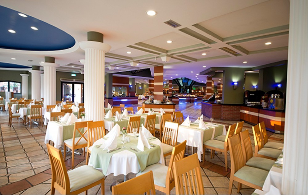 Hotelski sadržaj: Recepcija, glavni restoran, a la carte restoran, lobby bar, bar pored bazena, bar na plaži, bazen sa toboganima i odvojenim delom za decu, poslastičarnicu, mini klub za decu 4-12 god., mini disko, animaciju za decu i odrasle, noćnu animaciju, spa centar (teretana i sauna besplatno, ostalo uz doplatu), wi fi u lobiju je besplatan.