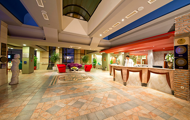 Hotelski sadržaj: Recepcija, lift, 2 restorana, lobby bar, bar pored bazena, dva otvorena bazena sa toboganima i odvojenim delom za decu, frizer, mini market, wi fi beplatno u zajedničkim prostorijama.