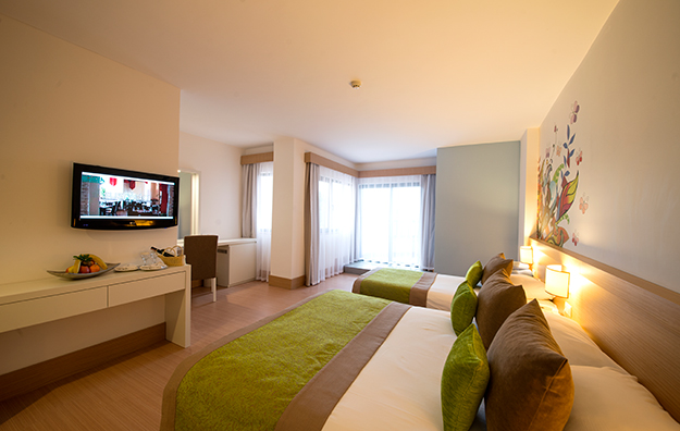 Family sobe su veličine oko 35-45m2 (max 3 odrasle + 2 dece ili 4 odrasle + dete ), imaju 2 sobe – u jednoj francuski ležaj, u drugoj dva odvojena kreveta, dodatni ležaj je sofa ili krevet na rasklapanje.
