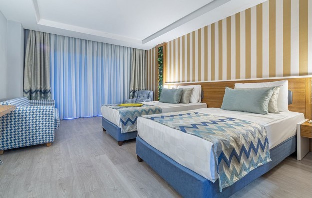 Smeštaj: Hotelski kompleks čine glavna sedmospratna zgrada i pet dvospratnih vila koje imaju ukupno 358 soba. U glavnoj zgradi se nalaze standardne sobe sa pogledom na kopno ili more i porodične sobe, dok se u vilama nalaze vila standardne sobe i vila porodične sobe. Hotel poseduje i sobe za osobe sa posebnim potrebama.