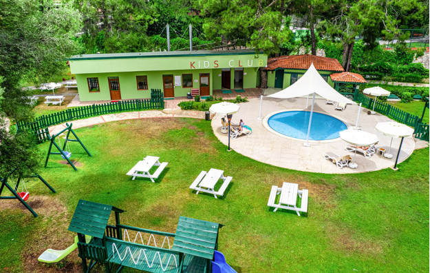 Hotelski sadržaj: Recepcija, glavni restoran, bar pored bazena, bazen za odrasle sa toboganom i odvojenim delom za decu, spa (tursko kupatilo, sauna i masaže-sve uz doplatu).