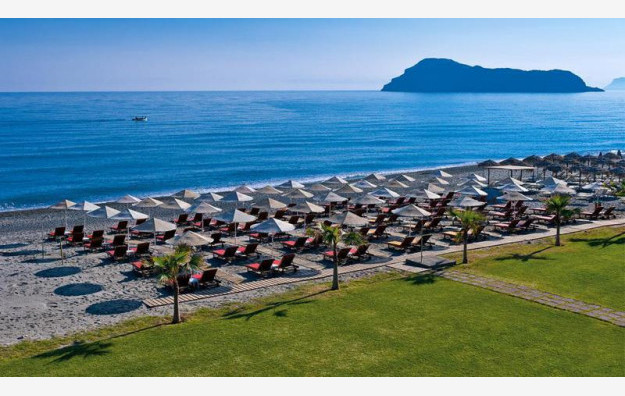Hotelski kompleks se pruža sve do sopstvene peščane plaže, na kojoj su suncobrani i ležaljke na raspolaganju gostima besplatno.