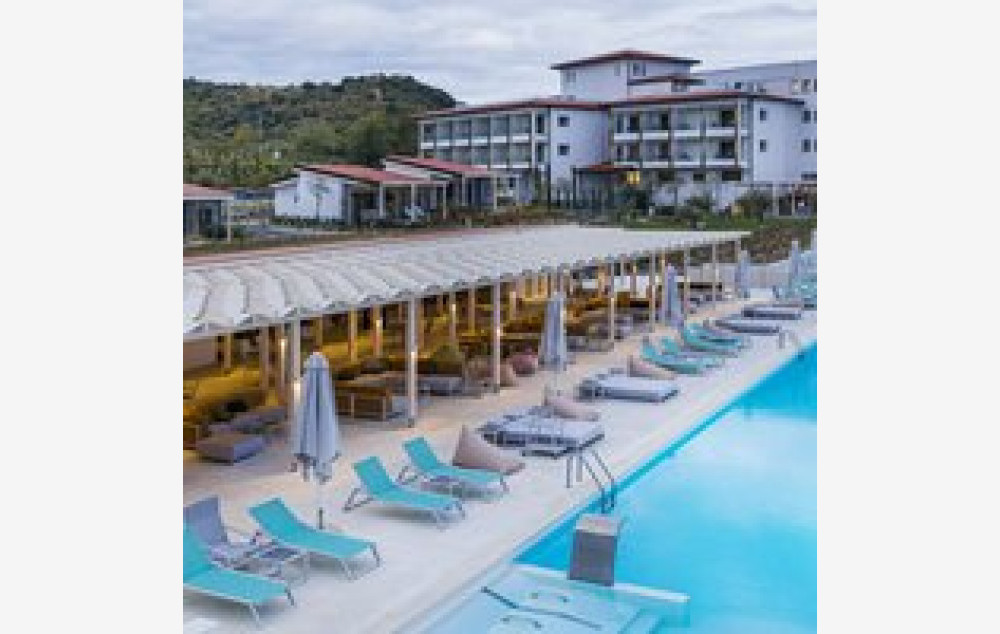 Junior Suite Pool/Side Sea View - oko 37m2, udobno dizajnirani apartman otvorenog tipa sa prostorom za sedenje i šarmantnim balkonom sa bočnim pogledom na more , sa francuskim ili dva singl ležaja i sofom na razvlačenje. Namenjena za 2-4 osobe.