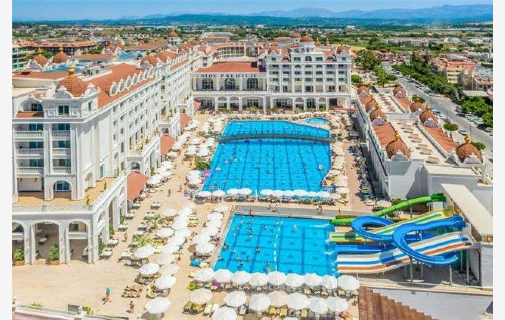 Hotelski sadržaj: Recepcija, 2 glavna restorana, 2 a la carte restorana, dijetalni meni, 13 barova, 2 unutrašnja i 5 spoljašnjih bazena, 5 dečijih bazena, 6 đakuzija, akva park sa 19 tobogana (10 dečijih), bioskopska sala, dnevne i večernje animacije, mini klub (za decu od 4-12 godina), teenage klub (za decu od 13-17 godina), mini disko, igraonica, aerobic u vodi, bocanje, pikado, stoni tenis, odbojka na pesku, teniski teren, košarka, tursko veče, hamam, sauna, parna soba, teretana, bilijar (uz doplatu), wi fi (u lobiju).