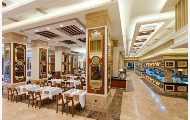Hotelski sadržaj: Hotel poseduje glavni restoran, 2 a la carte restorana (turski i riblji-korišćenje jednog besplatno u toku boravka uz obaveznu rezervaciju), 2 bara, spoljašnji i unutrašnji bazen za odrasle i decu, večernju animaciju, dečiji klub 8za decu od 4-12 godina), dečija igraonica, mini disko, tursko kupatilo, sauna, masaže, fitness, aerobic, stoni tenis, bilijar, boćanje, pikado, wi fi.