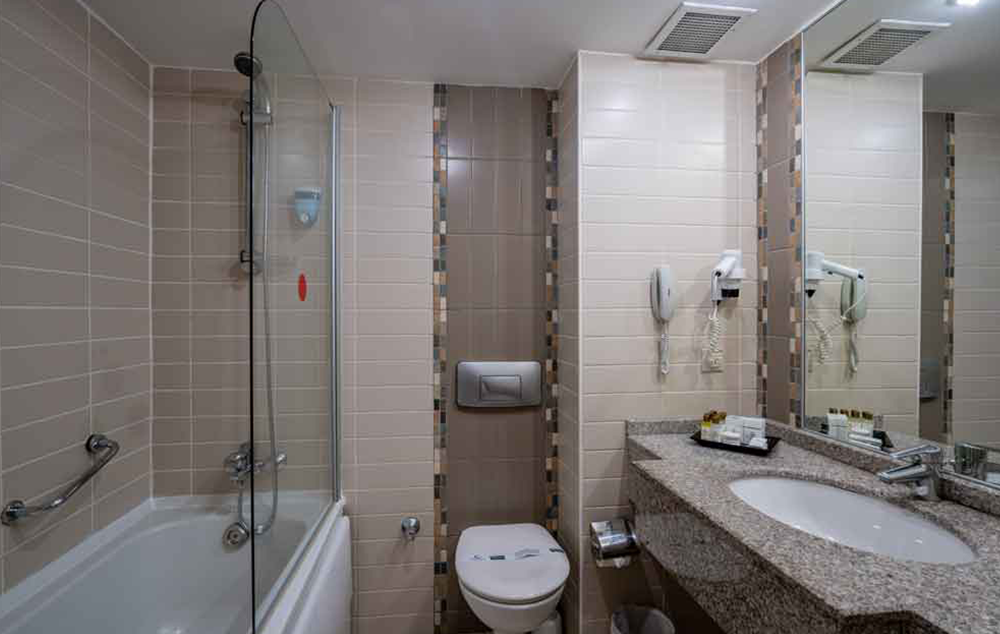 Svaka soba ima: Kupatilo sa tušem/wc, klimu, fen, SAT/TV, telefon, mini bar (samo voda besplatno), sef (uz doplatu), balkon.