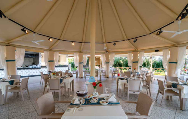 Smeštaj: Hotelski kompleks čine glavna sedmospratna zgrada i pet dvospratnih vila koje imaju ukupno 358 soba. U glavnoj zgradi se nalaze standardne sobe sa pogledom na kopno ili more i porodične sobe, dok se u vilama nalaze vila standardne sobe i vila porodične sobe. Hotel poseduje i sobe za osobe sa posebnim potrebama.