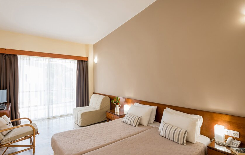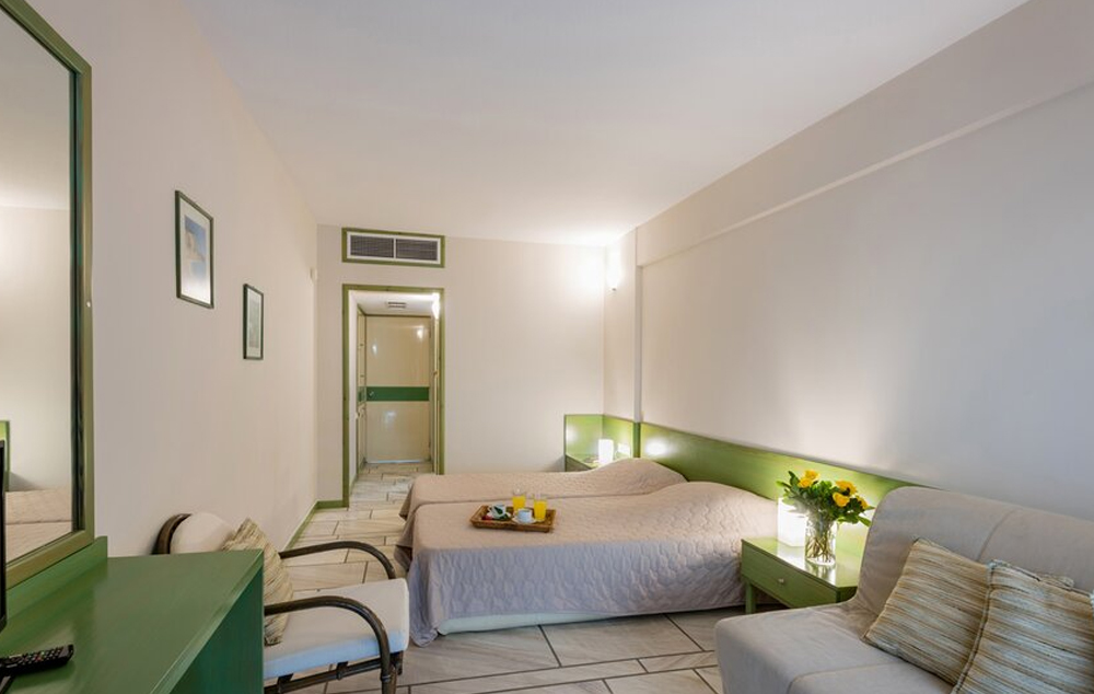 Standard Room Sea View - oko 22m2 sa pogledom na more, lociran je u glavnoj zgradi. Opremnjen je sa francuskim ili dva singl ležaja i sofom. Namenjen za 2-4 osobe.