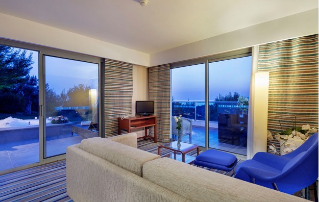 Hotelske sobe sa pogledom na kopno ili more se nalaze u glavnoj zgradi i imaju 25m2. Sobe poseduju klima uređaj, telefon, SAT TV, sef, mini bar, set za kafu i čaj, kupatilo, fen za kosu, balkon ili terasa. Maksimalno borave 3 odrasle osobe. Junior club sobe se nalaze u bungalovima i imaju 35m2. Sastoje se od jedne spavaće sobe i dva kupatila. Isto su opremljene kao hotelske sobe. Maksimalno borave 3 odrasle osobe i 1 dete do 13 godina. Superiorsobe se nalaze u glavnoj zgradi i imaju 30m2-40m2. Isto su opremljene kao hotelske sobe. Maksimalno borave 3 odrasle osobe i 1 dete do 13 godina. Club family sobe se nalaze u bungalovima i imaju 49m2. Sastoje se od dve sobe i dva kupatila. Isto su opremljene kao hotelske sobe. Maksimalno borave 4 odrasle osobe i 1 dete do 13 godina.