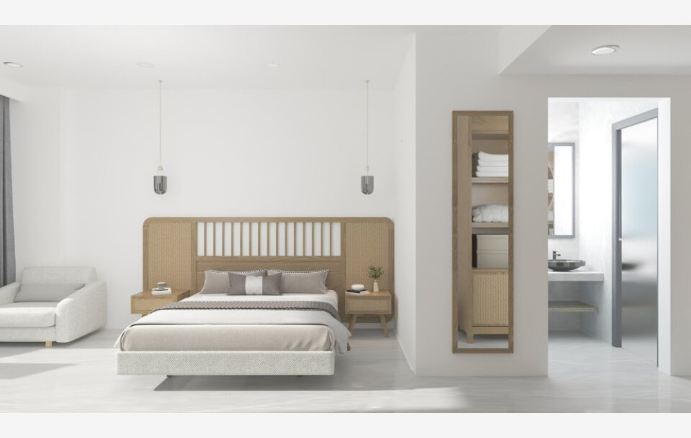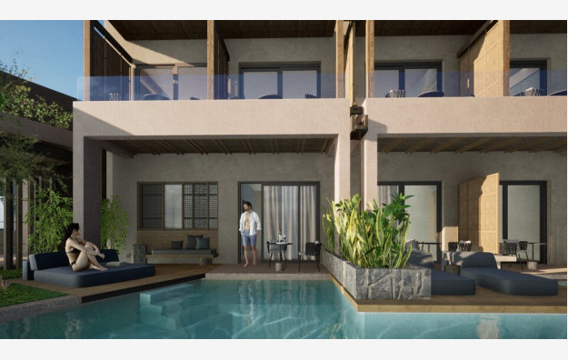 Suite Private Pool - 40 m², savršeno utočište u ovom elegantnom apartmanu u prizemlju s dva prostrana dela - spavaćom sobom s bračnim krevetom i dnevnim boravkom s kaučima na razvlačenje, sopstvenim kupatilom s tušem i nameštenom terasom s privatnim bazenom, okruženom mirnim pogledom na vrt.