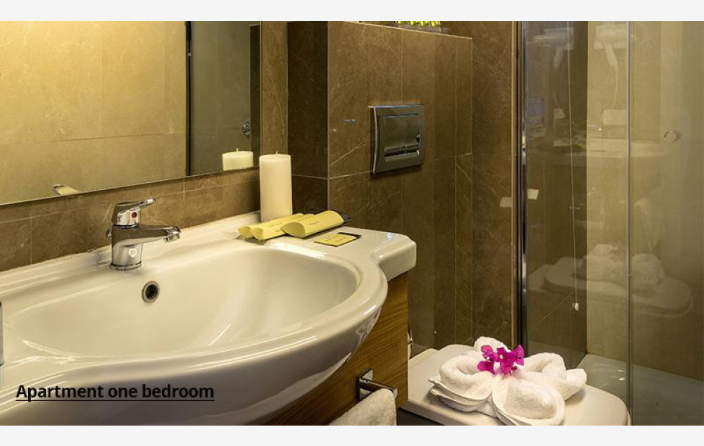 Sve sobe poseduju: klima uređaj, telefon, Wi-Fi internet, SatTV, fen za sušenje kose, sef (uz doplatu), čajnu kuhinju, mini frižider, ketler, set za kafu i čaj, kupatilo sa tuš kabinom ili kadom, balkon ili terasu. Tipovi soba: Studio pogled planina površine je oko 20 m² i namenjen je za smeštaj maksimalno dve odrasle osobe i jedno dete (tri odrasle osobe se ne mogu smestiti u ovaj tip sobe), sa opremljenom čajnom kuhinjom i pogledom na bazen ili vrt, sastoje se od francuskog ležaja ili dva standardna ležaja, dok dodatni ležaj za dete može biti pomoćni. Bebi krevetac je na raspolaganju gostima besplatno (obavezno najaviti prilikom rezervacije). Jednosobni apartman je površine oko 32 m², a sastoji se iz spavaće sobe sa dva odvojena ležaja ili bračnim ležajem i dnevnog boravka sa dve sofe i čajnom kuhinjom. Namenjen je za maksimalno dve odrasle osobe i dvoje dece ili četiri odrasle osobe, sa pogledom na bazen ili dvorište. Sobe tipa “studio’’ i ’’apartman ’’ su po svojoj osnovnoj strukturi dvokrevetne, dok ostali ležajevi mogu biti pomoćni. Bebi krevetac je na raspolaganju gostima besplatno (obavezno najaviti prilikom rezervacije).