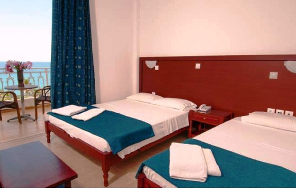 Double Room Side Sea View- – oko 18-23m2 sa bočnim pogledom na more. Sobe su komforne i opremnjene su sa francuskim ili dva odvojena kreveta. Namenjene za 2-3 osobe